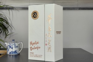 | 酒盒包装材质 | 金卡纸裱3mm中纤板 |